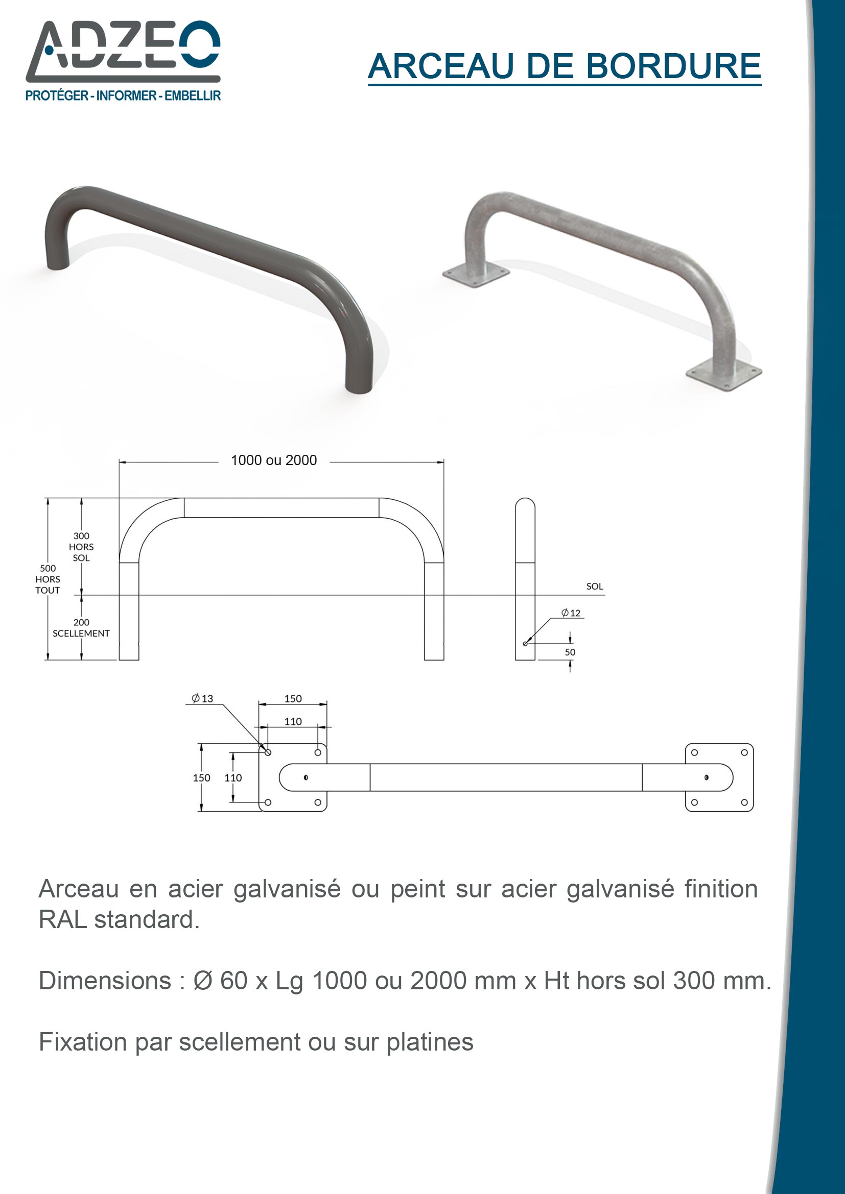 Afin d’assurer une durabilité maximum du produit, tous nos arceaux vous sont proposés en acier galvanisé (peint ou brut). Les arceaux de bordure que nous vous proposons sont disponibles en versions un mètre ou deux mètres.