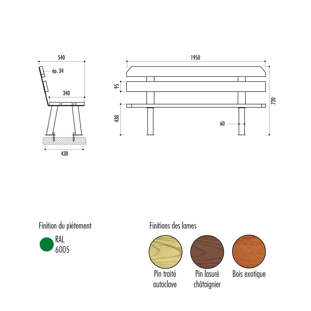 - Banc réalisé en pin traité autoclave classe IV certifié CTB B+ et FSC.
