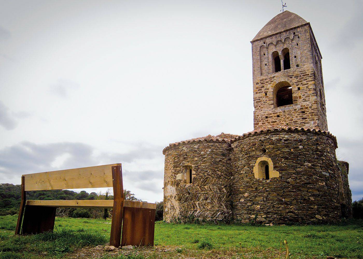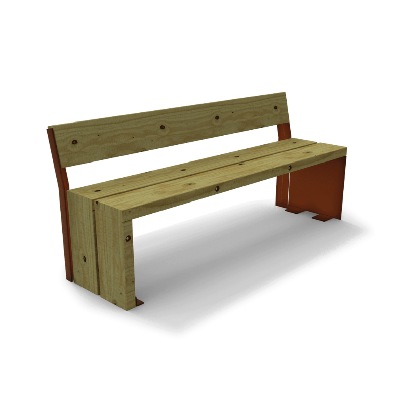 - Banc avec piètement en tôle d’acier Corten de 8mm.