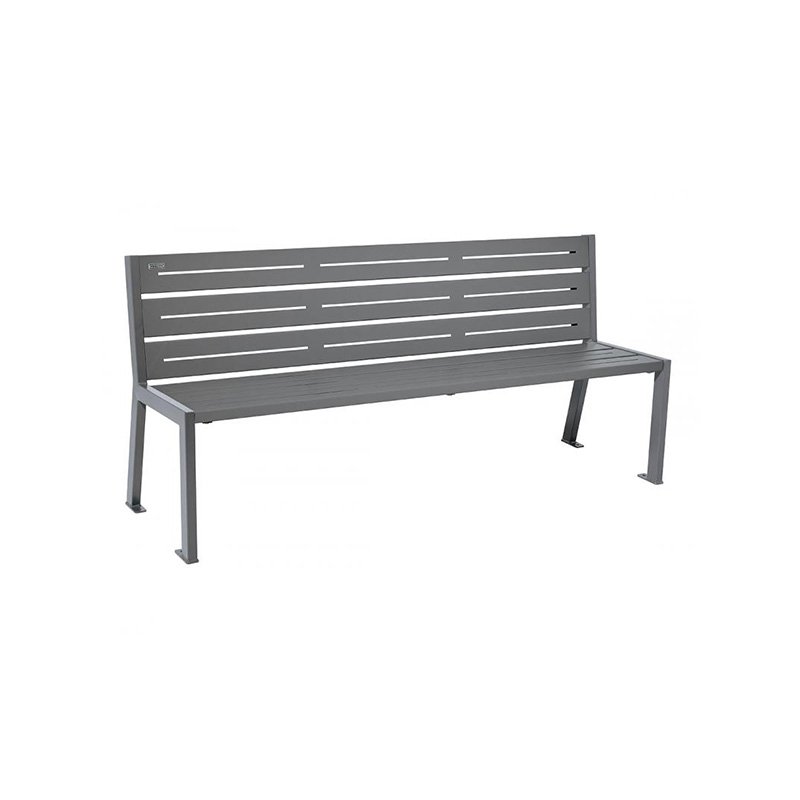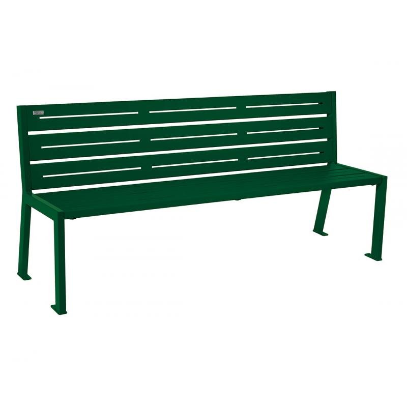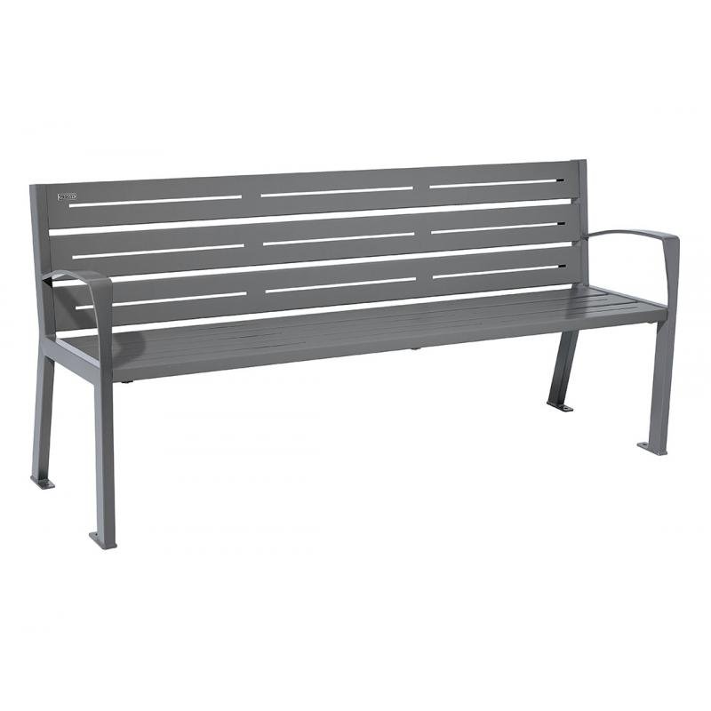 Le banc Silaos en acier est disponible en 5 ou 6 lames, avec ou sans accoudoirs.