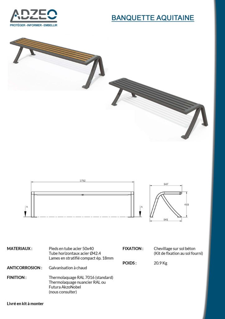 BANQUETTE AQUITAINE ACIER