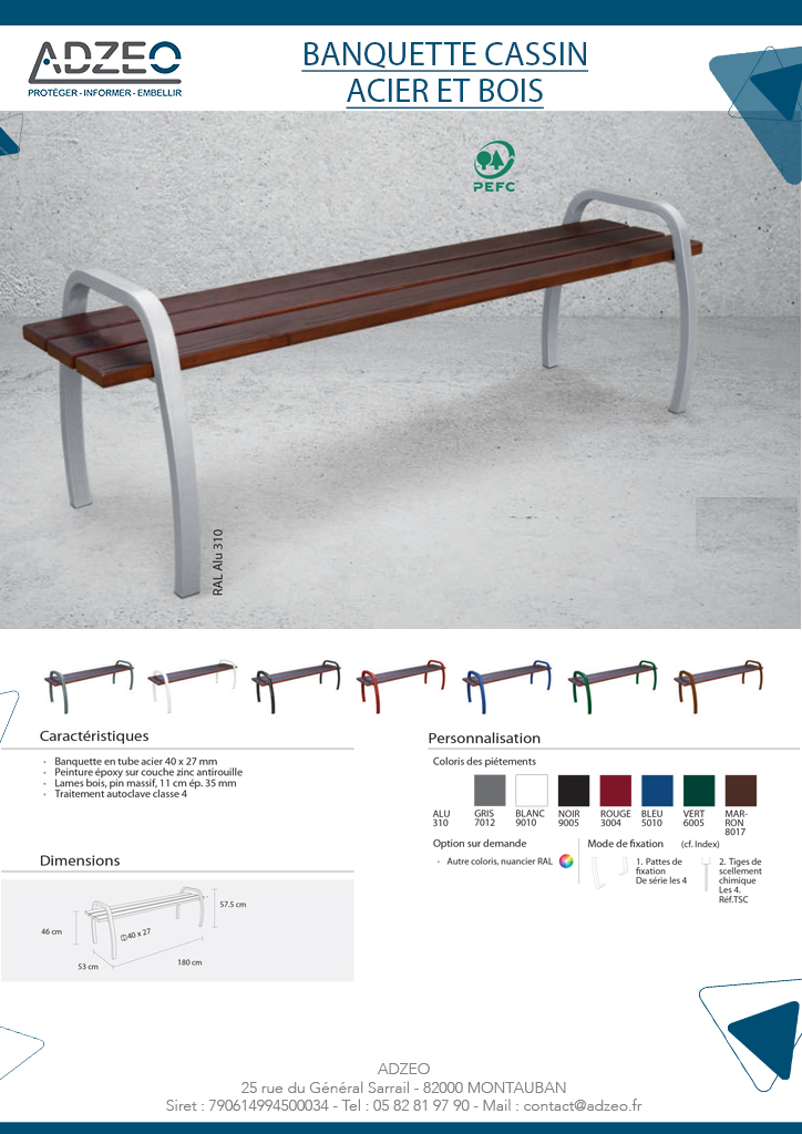 BANQUETTE CASSIN ACIER ET BOIS
