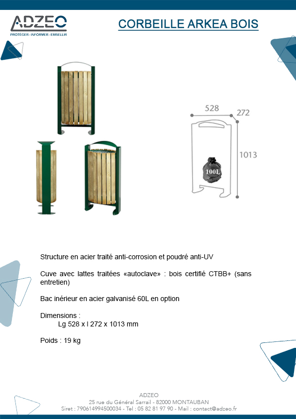 Corbeille Arkea sur pied façade en bois