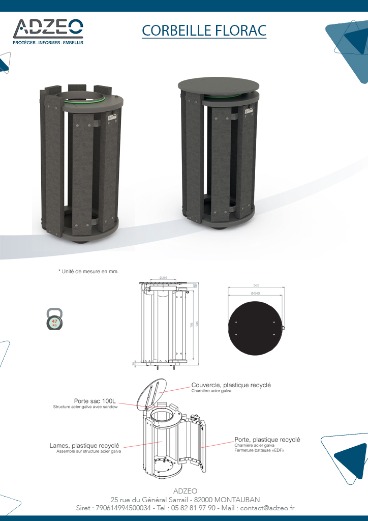 ♻️ Cette corbeille Florac plastique, est entièrement réalisée à partir de matériaux recyclés, afin de rendre ce produit écologique et respectueux de l’environnement.