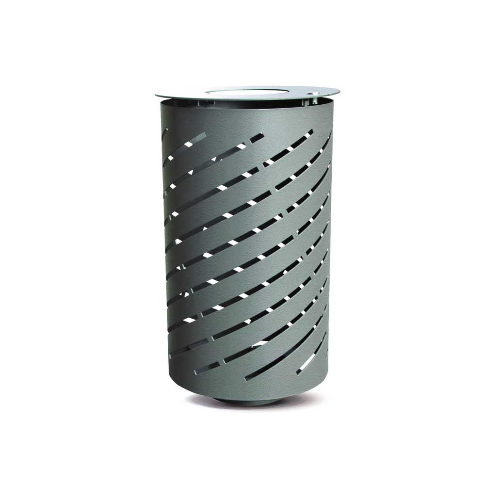 La corbeille Volute, au design épuré convient parfaitement à un environnement urbain.