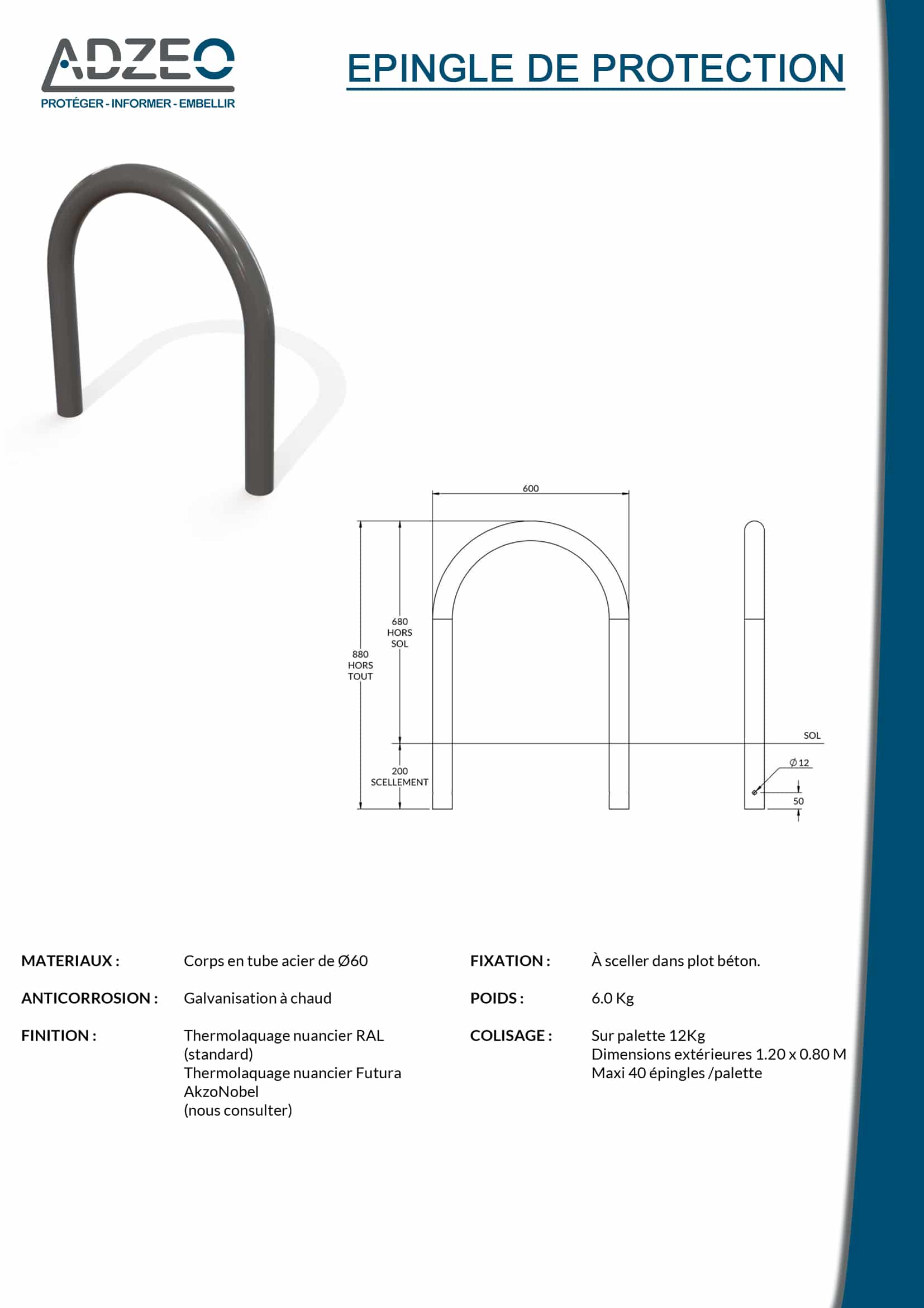 Épingle de protection sur platines idéale pour protéger les bouches d’incendie, les compteurs, les poteaux…