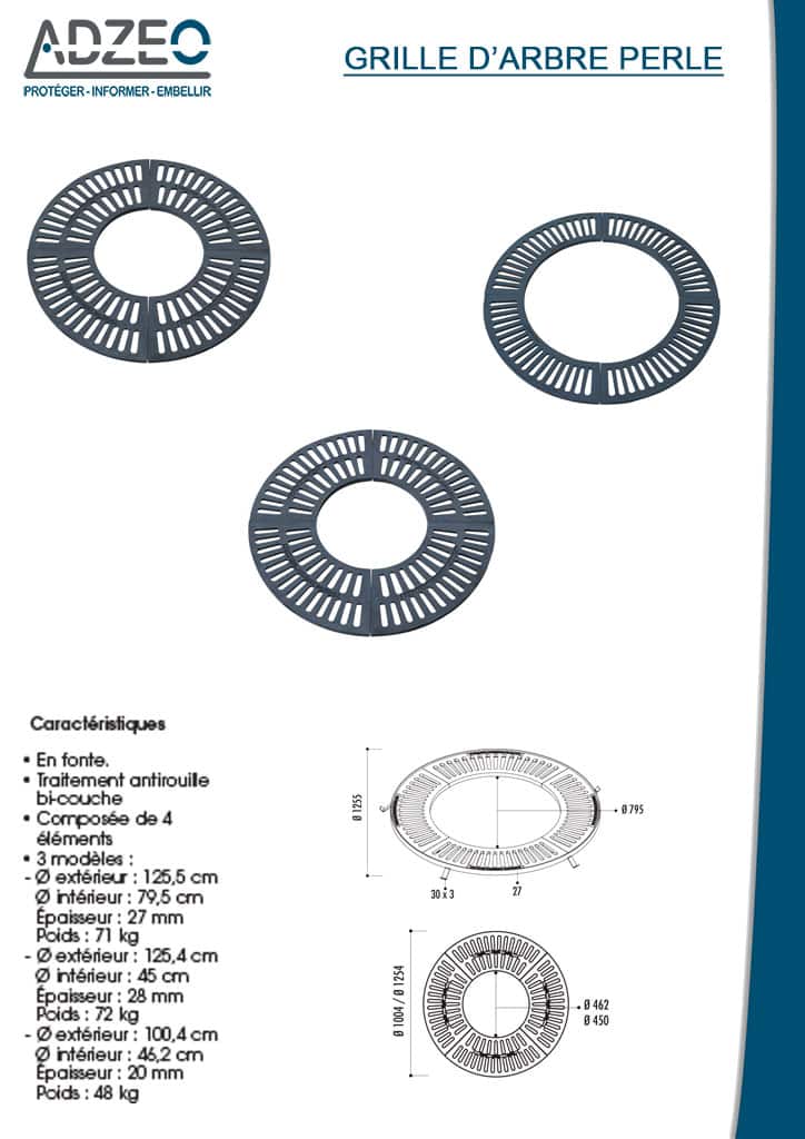 La grille d’arbre lumière ronde, dispose d’une structure en fonte avec traitement anti rouille bi-couche, composée 4 éléments.