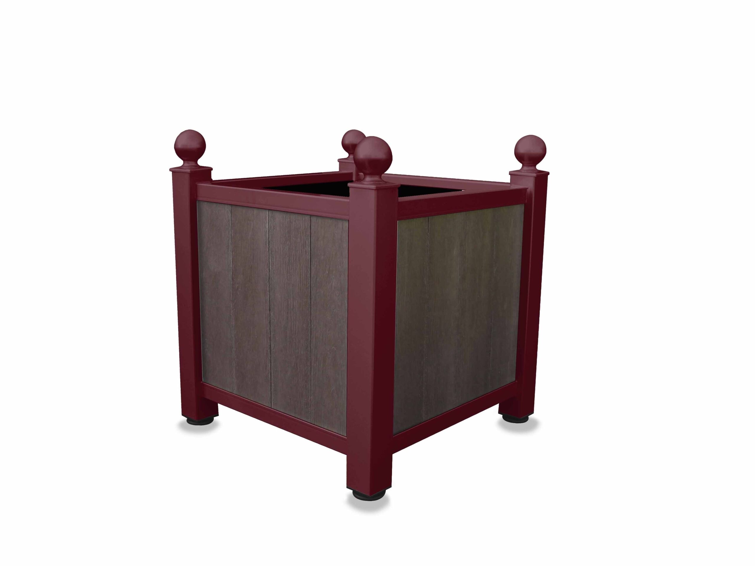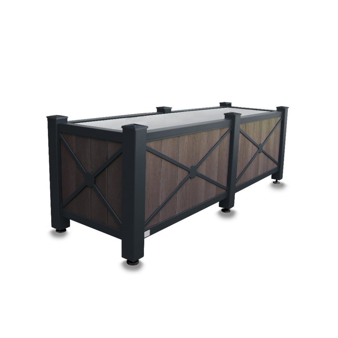 Ce pot à fleurs se compose de poteaux boule Ø 80 x 80 mm, d’une structure en acier et de lames en plastique recyclé. Une jardinière au grand format.