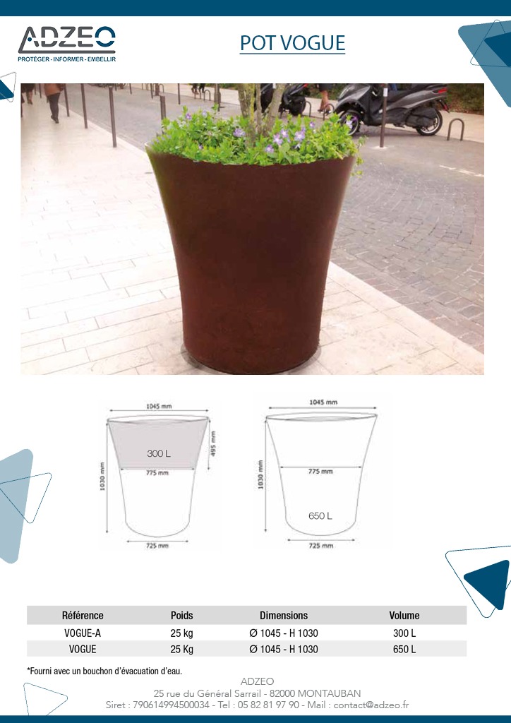 Cette jardinière Vogue Corten, pourra décorer parfaitement les parcs, jardins, parvis…Ce pot rond Vogue est conçu à partir d’une résine thermoplastique en poudre, insérer dans un moule. Cette technique est appelée « rotomoulage ». Cela consiste à réaliser un moulage par rotation. Ce type de fabrication offre une homogénéité d’épaisseur de parois.
