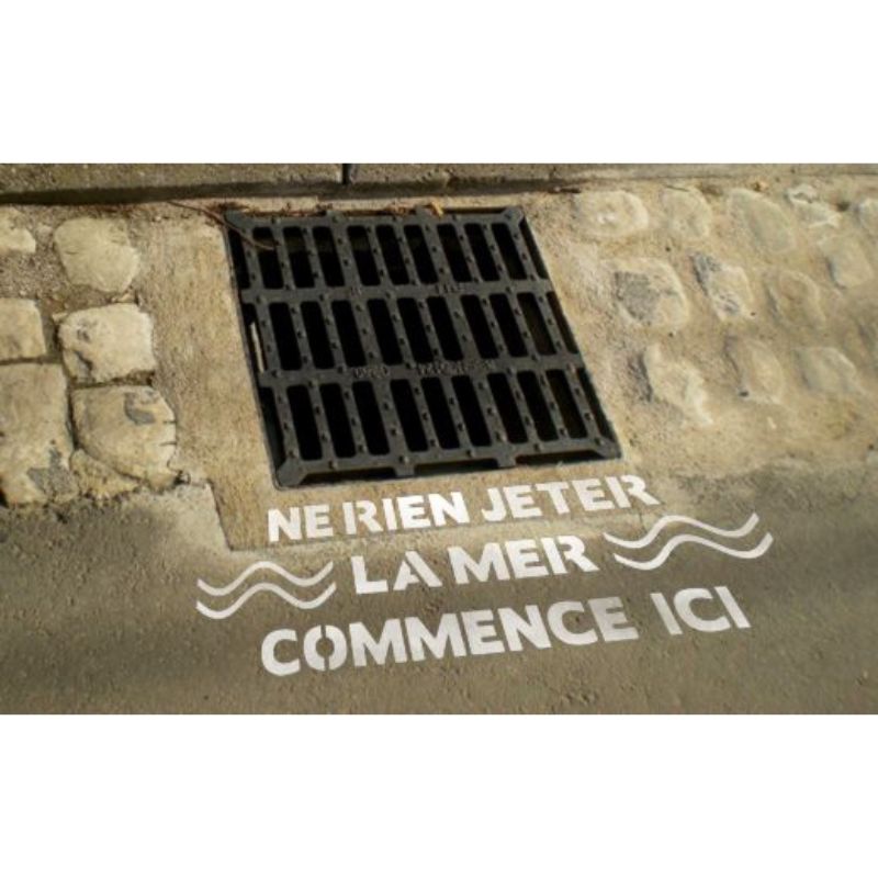 Pochoir urbain “Ici commence la mer” – marquage de sensibilisation