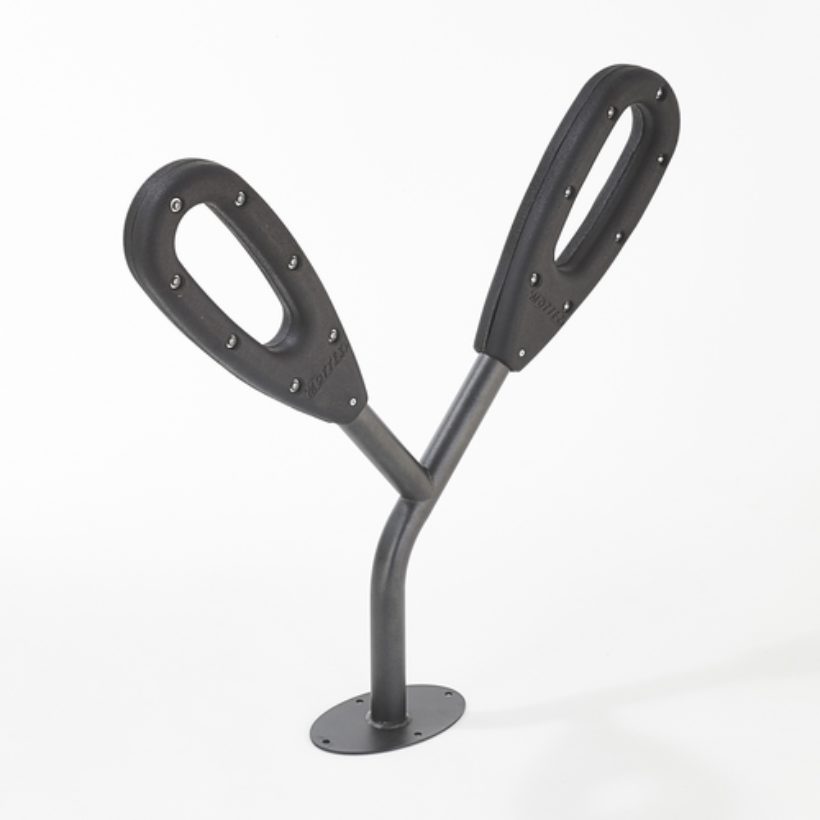 Conçu à partir d’un tube en acier de Ø 50mm et équipé de 2 anneaux en acier plat recouverts de gomme en caoutchouc recyclé, le poteau range 2 vélos papillon combine résistance et durabilité. Grâce à aux anneaux en gomme, vos vélos restent protégés des éraflures et des chocs.
