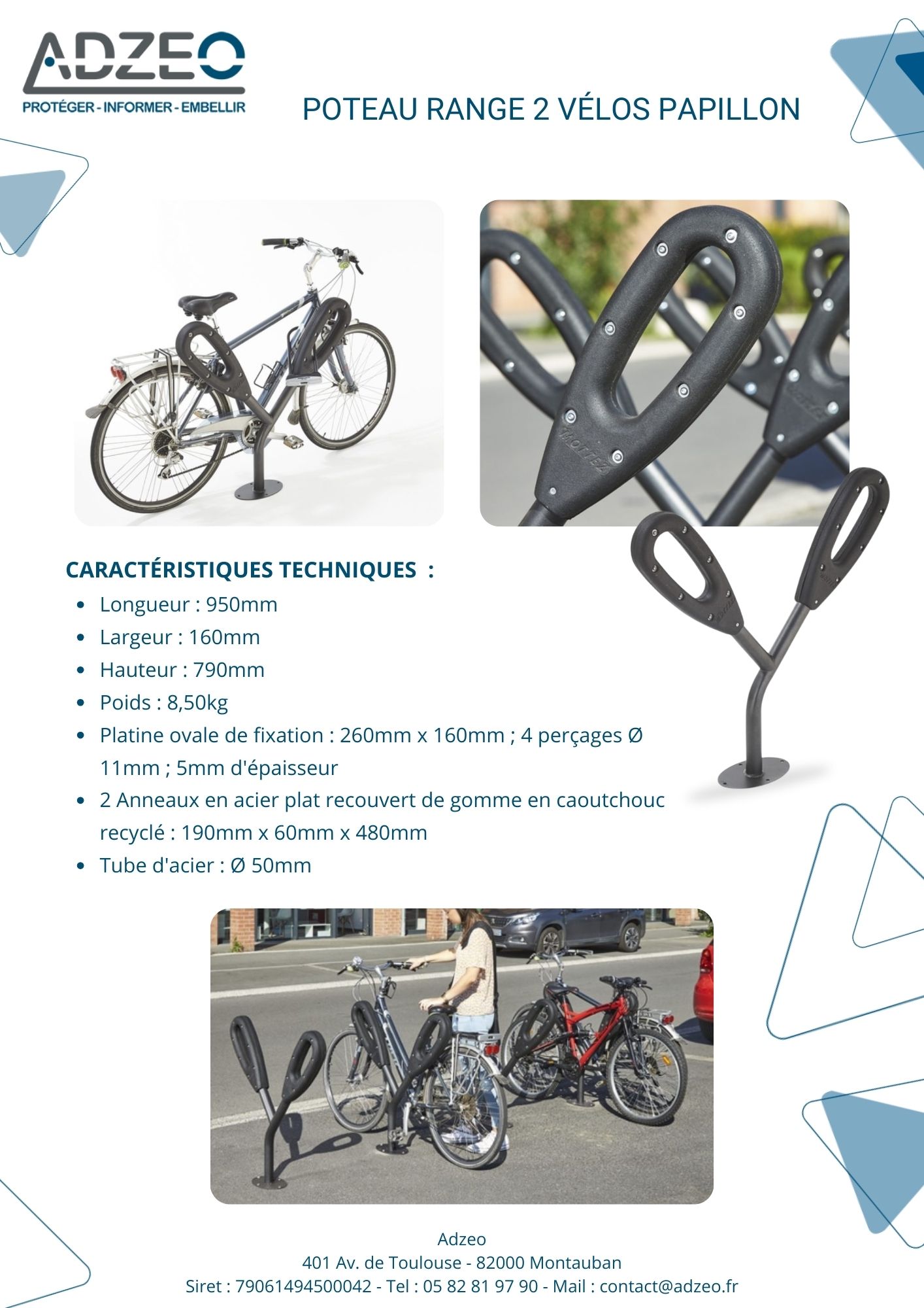 Le poteau range 2 vélos papillon offrant une protection maximale à vos vélos.