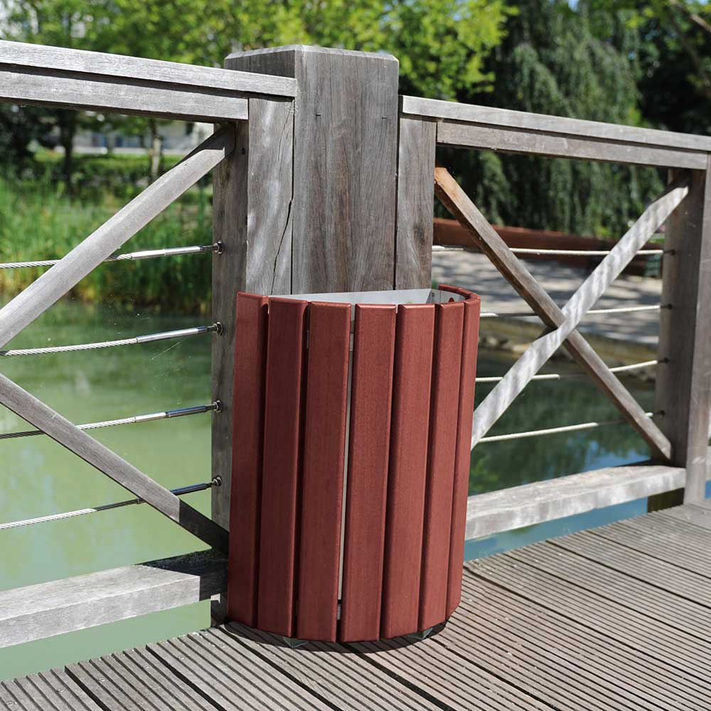 La corbeille Cologne viendra aisément se fondre dans vos espaces verts. Ses Lames de bois lui donne un aspect naturel et sa parfaite finition la dissocie des corbeilles dites « rustiques ».