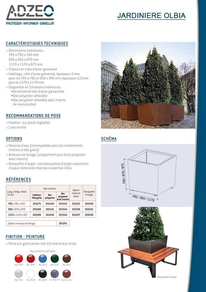 Un bac tout métal au design sobre et moderne. La jardinière Olbia est parfaite pour la mise en valeur de vos espaces collectifs.