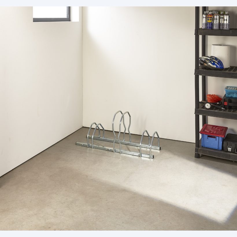 Le râtelier 3 vélos fat bike ordonne votre espace en rangeant vos vélos avec des pneus de 4,8 pouces de large maximum. Il est réglable pour des pneus de 40mm jusqu’à 122mm en continu. Ce râtelier ne nécessite pas obligatoirement de fixation au sol mais peut se fixer si besoin grâce à 4 trous de Ø 8,5mm.