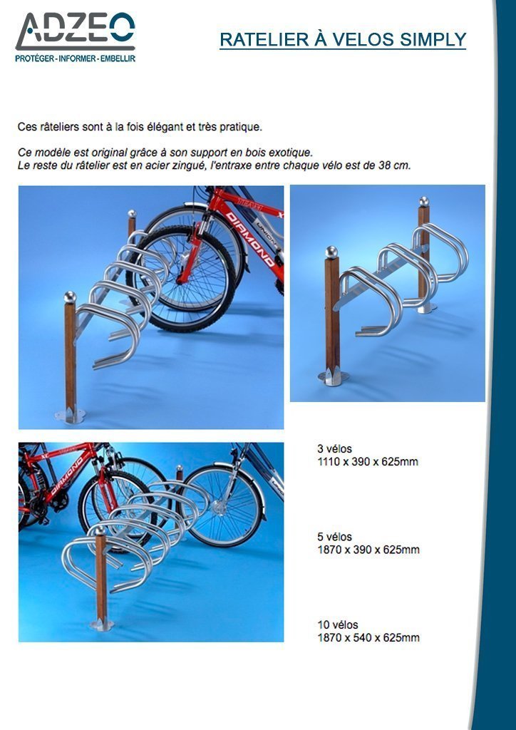 Il offre un très beau rendu, élégant et épuré. Ce range vélos permet un rangement efficace, en garage, en abri ou en plein air pour vos espaces publiques (bibliothèque, gares, centre commercial…).